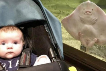 小寶寶參觀水族館! 魟魚「可愛搶鏡」露出同款表情:倫家也是寶寶❤️