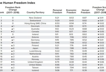 美加智庫評人類自由 台灣列10年來進步最多之一
